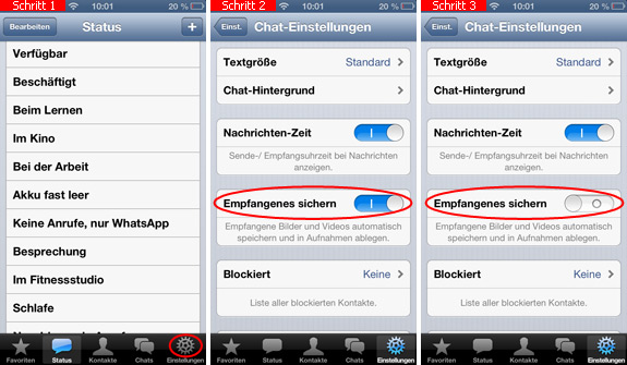 Damit Empfangenes nicht automatisch auf dem iPhone gespeichert wird, müssen Sie wie folgt vorgehen: